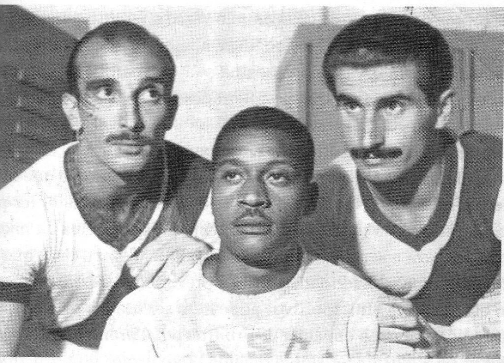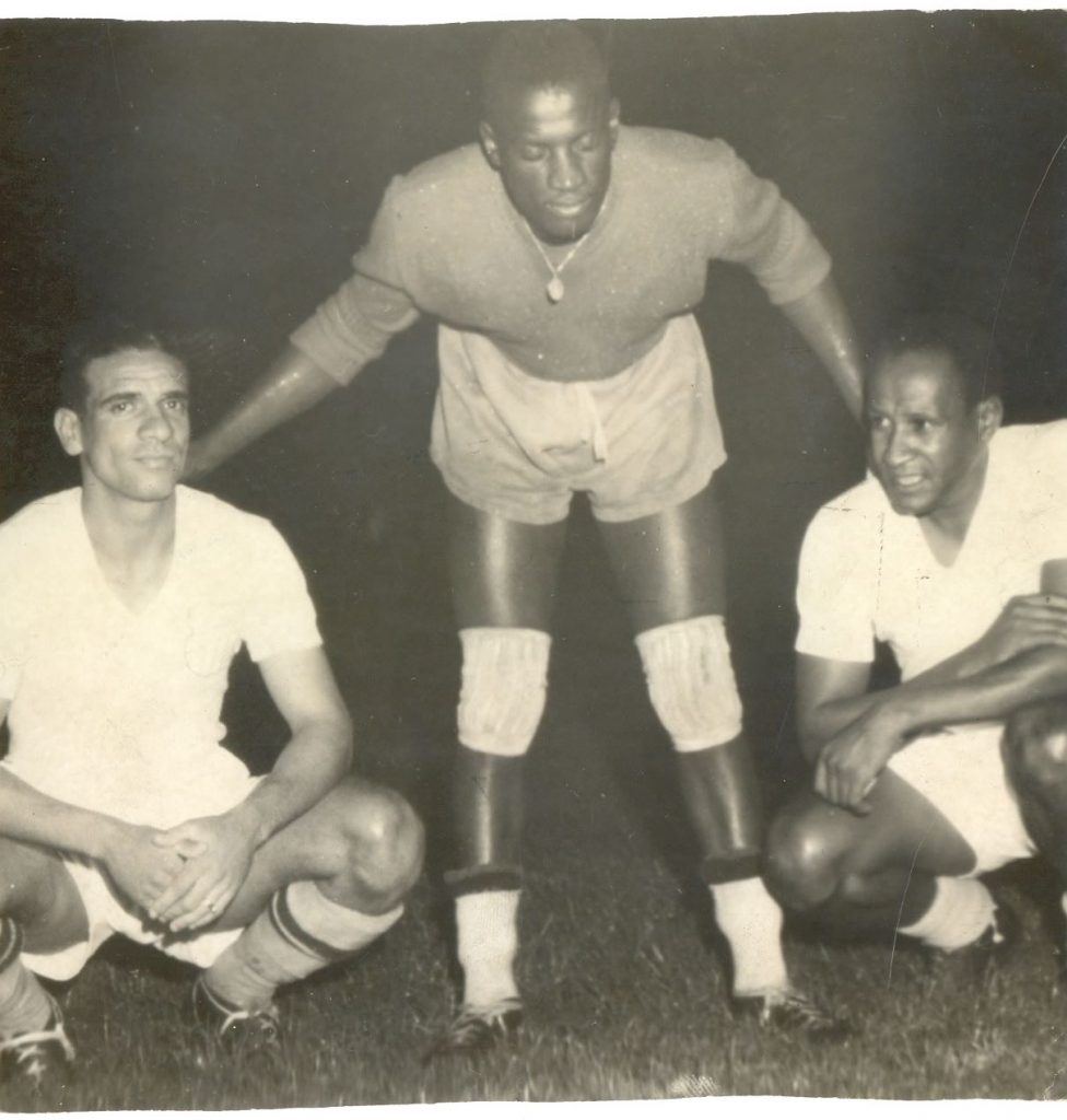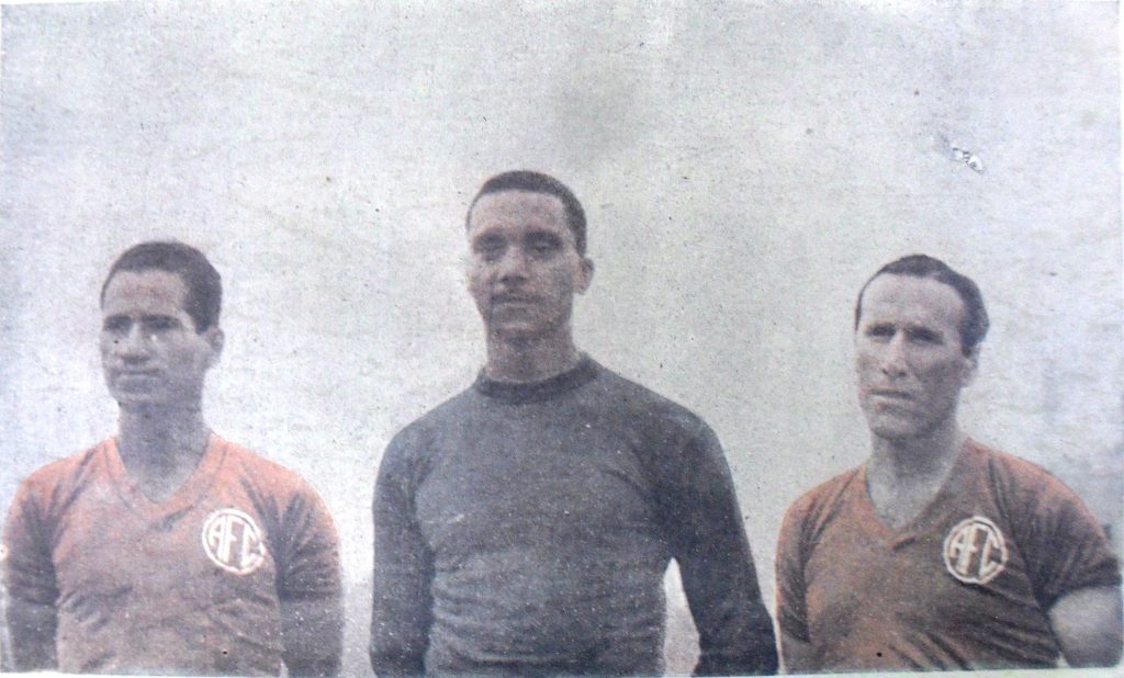 O trio final com Osni, Domício e Gritta marcou época com a camisa do América no campeonato carioca de 1947.